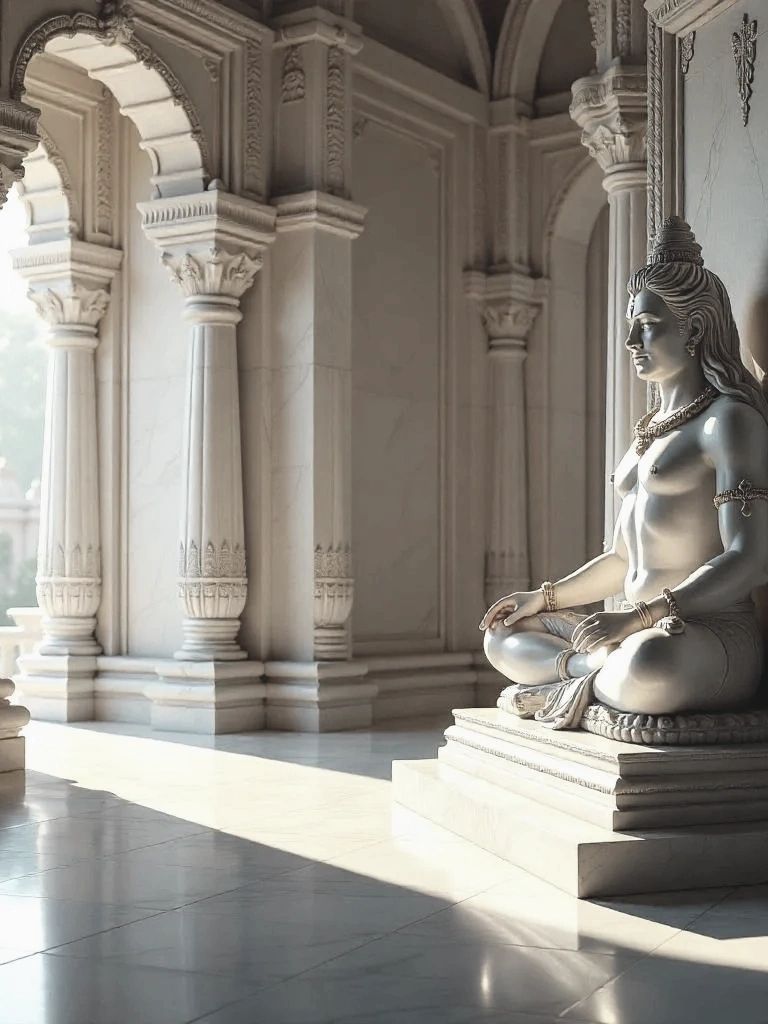 Lord Shiva is one of the most powerful gods in Hinduism and one of the most popular dieties. He is worshiped throughout the Indian subcontinent and greater southeast Asia. He is known as the lord maintaining the cycle of existence, including its beginning and conclusion. He is often shown meditating on Mount Kailash, with a third eye on his forehead, a snake around his neck, and the sacred river Ganga flowing from his hair. People worship him for strength, wisdom, and inner peace, believing he removes negativity and leads them to enlightenment. He is also known as the patron of yoga and meditation.